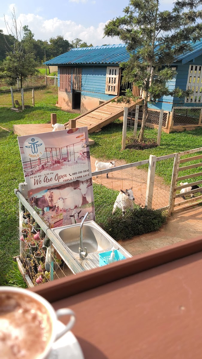 Upon entering Triple T Farm Cafe', you are greeted by a serene environment where time seems to slow down. The cafe is surrounded by lush greenery, creating a picturesque backdrop for sipping on refreshing beverages as you unwind. You might find yourself captivated by the playful energy of the resident goats and lively dogs, who add a warm, welcoming touch to your visit.